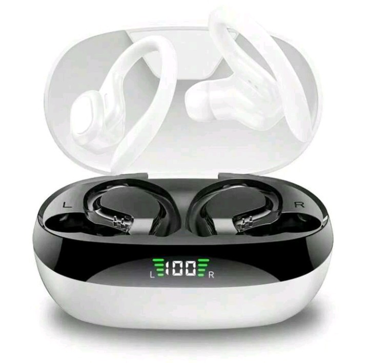 WIRELESS EARBUDS WITH HOOK FOR OUTDOORS ACTIVITIES,BLUETOOTH, FINGEREPRINT SENSOR, LONG LASTING UP TO 5 HOURS WITHOUT CHARGING CASE AND 14 HOURS WITH CHARGING CASE